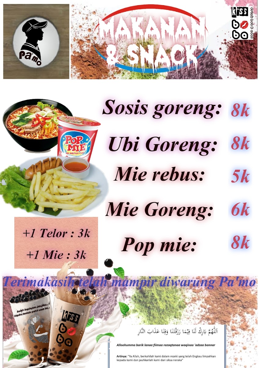 Kafe Pa'Mo specializes in an array of delightful drinks that cater to various palates. The star of the menu is undoubtedly their Kiss Boba Drinks, which seamlessly blend rich flavors with playful textures. Imagine sipping on the Kiss Choco Choklate, a decadent combination of chocolate powder, boba pearls, luscious UHT chocolate, and creamy sweetened condensed milk. At just IDR 15,000, this drink is a steal for anyone looking to elevate their coffee experience. Alternatively, the Kiss Choco Vanilla Latte offers a delightful twist, combining velvety vanilla with the satisfying chewiness of boba, topped with crumbled Oreo for that extra crunch.